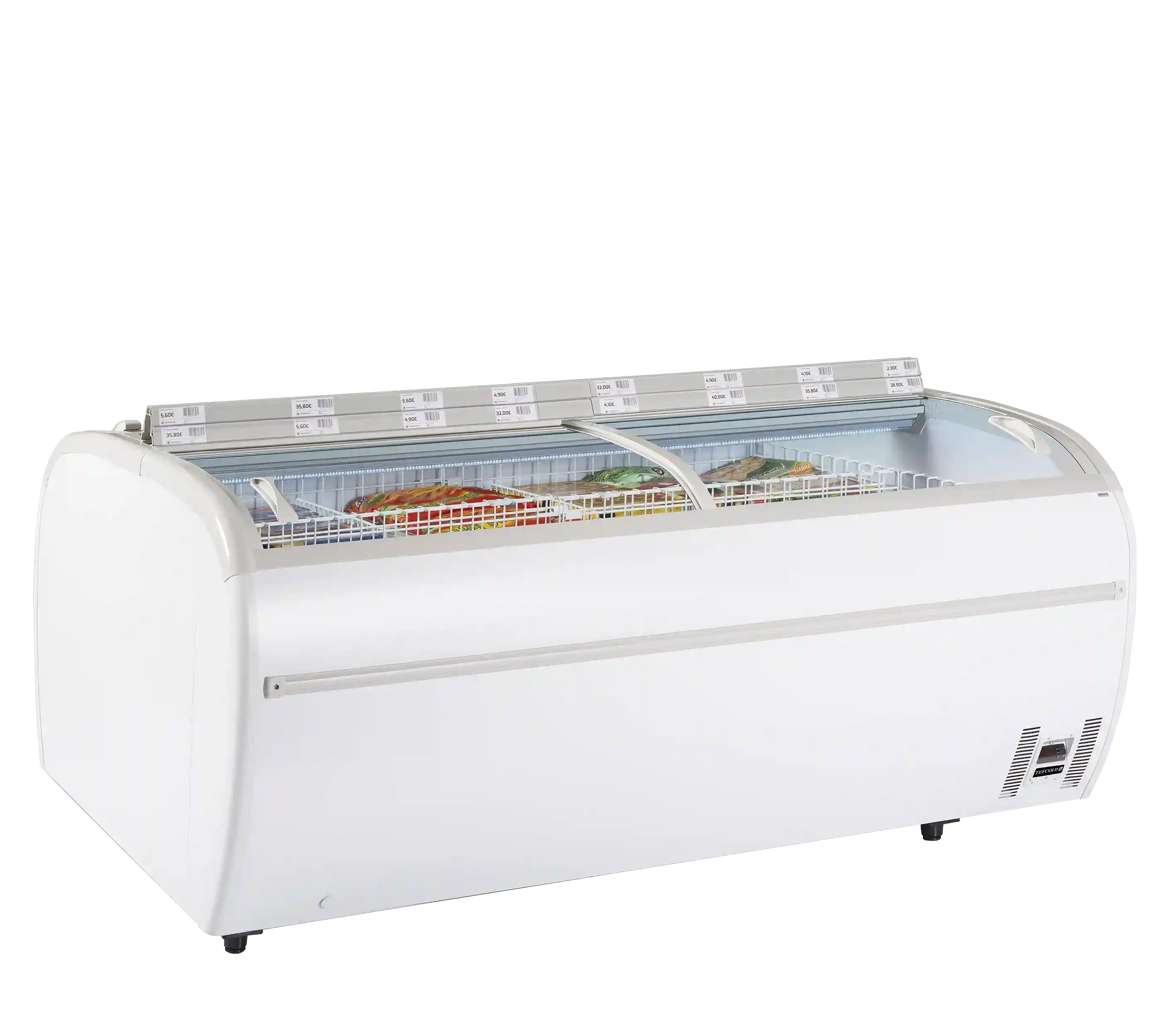En rymlig och lättöverskådlig frysbox för tydlig presentation av frysta varor.