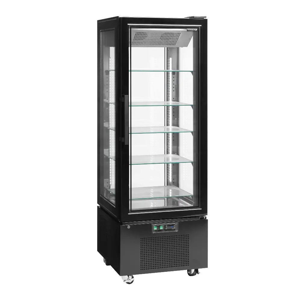 Frysen är också väldigt praktisk i vardagen. Den svarta designen ger ett proffsigt intryck, hjulen gör den lätt att flytta och dörren kommer med lås för extra trygghet. Tack vare den låga ljudnivån passar den lika bra i butik, café, lounge eller reception.